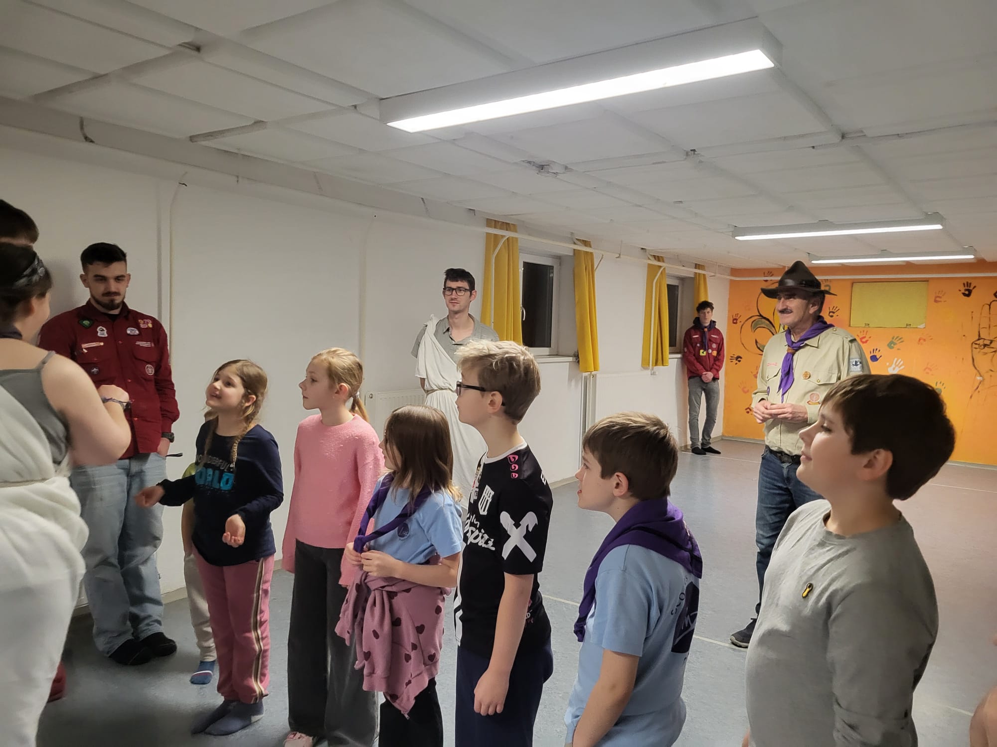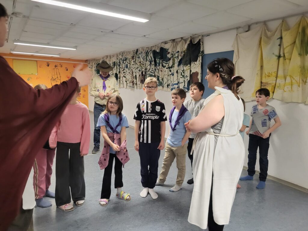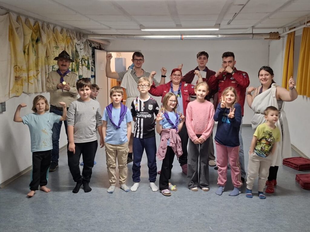 Ende Februar erlebten die WiWö in Enns ein spannendes Abenteuer. Plötzlich tauchte BiPi mit einem magischen Kompass auf, der ihn durch die Zeit reisen lassen kann. Doch der Kompass war beschädigt – und so landeten BiPi und die WiWö gemeinsam in der Zeit der Römer, wo sie sogar auf Gladiatoren trafen.Während BiPi versuchte, seinen Kompass zu reparieren, nutzten die Kinder die Gelegenheit, um vieles über das Leben der Römer zu lernen. Gleichzeitig erzählten sie den Römern auch, wie sich Technik und Alltag bis heute verändert haben.