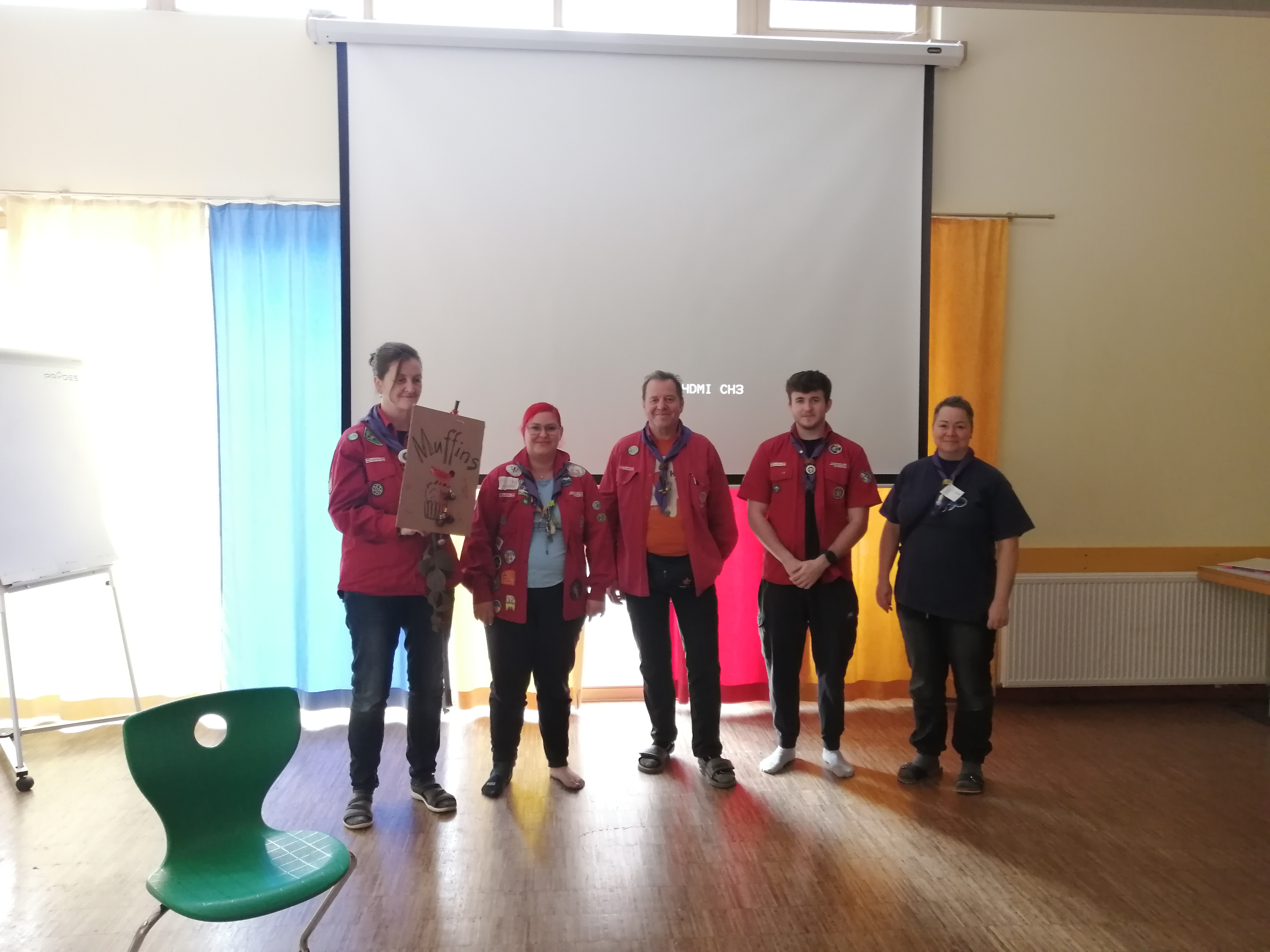 Und für alle die sich fragen, was denn nun mit dem Veilchen ist, und ob wir es gefunden haben… Wir waren alle erfolgreich und tragen unser selbstgebasteltes Lagerabzeichen stolz auf unseren Halstüchern.
